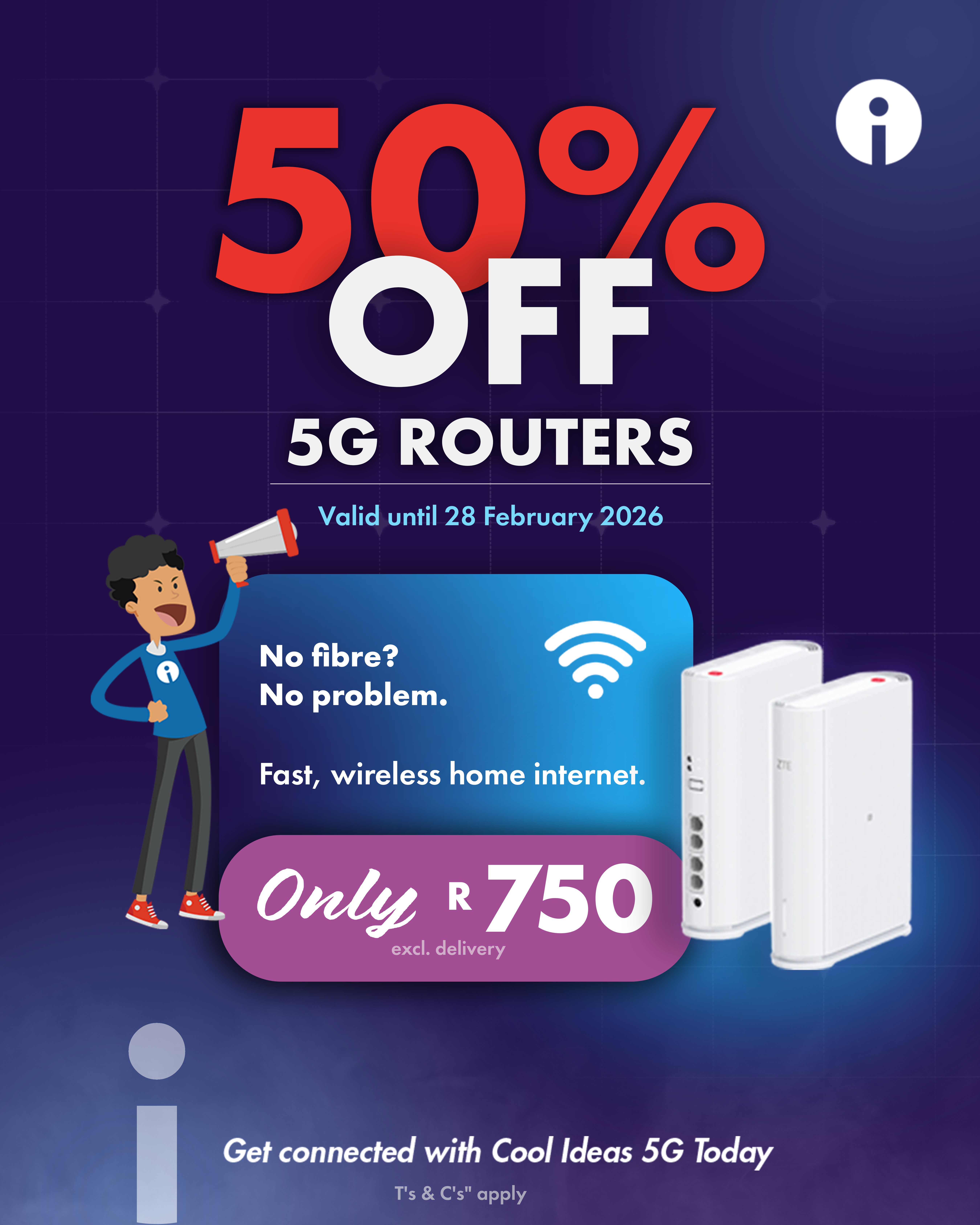 • 50% off selected 5G routers.